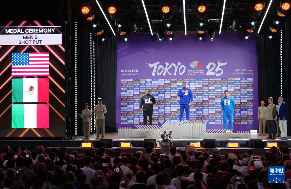9月14日,冠军美国球员Cruze(顶级中部),亚军墨西哥球员Muños(左上)和意大利第三名球员Fabry(右上)参加了颁奖典礼。同一天,在日本东京举行了2025年世界田径锦标赛的男子射门奖颁奖典礼。新华社记者Ju Huanzong于9月14日摄影,美国球员Cruze(中),墨西哥球员Munoz(左)和第三位意大利球员Fabry在颁奖典礼上。同一天,在日本东京举行了2025年世界田径锦标赛的男子射门奖颁奖典礼。新华社记者Ju Huanzong于9月14日摄影,美国球员克鲁兹冠军克鲁兹(Kruze)参加了颁奖典礼。同一天,在日本东京举行了2025年世界田径锦标赛的男子射门奖颁奖典礼。 9月14日,新华社记者Ju Huanzong摄N球员Munoz(左)和第三位意大利球员Fabry拍摄了颁奖典礼的照片。同一天,在日本东京举行了2025年世界田径锦标赛的男子射门奖颁奖典礼。新华社记者Ju Huanzong摄